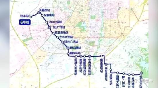 据了解,长春市轨道交通6号线为连接城市南部的东西向填充线,途经长春西站、飞跃路、芳草街、福祉大路等城市重要交通节点,全长29.57公里,设车站22座,其中9座可以换乘,预计建成时间是2025年。