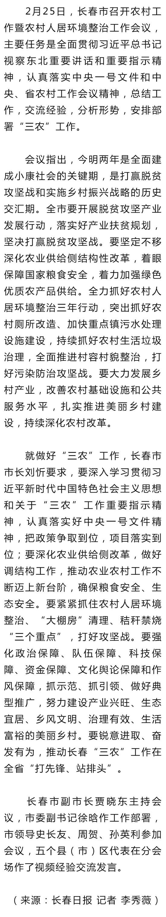 长春市推动“三农”工作在全省“打先锋、站排头”