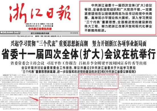 △2003年7月12日《浙江日报》的报道,红色框内即为“八八战略”具体内容
