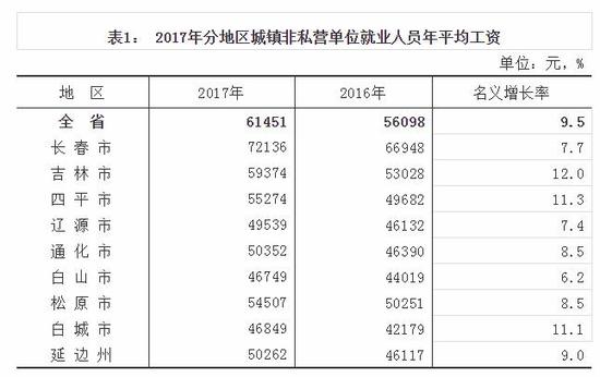 据吉林省统计局消息,2017年吉林省城镇非私营单位就业人员年平均工资为 61451 元 ; 2017年全省城镇私营单位就业人员年平均工资为 33209元。