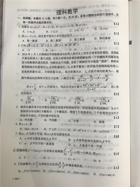 新浪教育讯 2019年高考理数考试已结束,以下为2019年高考理数真题及参考答案(全国卷II)。[适用地区:内蒙古、黑龙江、辽宁、吉林、重庆、陕西、甘肃、宁夏、青海、新疆、西藏、海南]