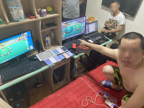 6月12日,延吉市公安局接到群众举报,在延吉市进学街东市场附近某小区住宅内,有人正在利用电脑、手机等工具为具有赌博性质的“某某棋牌”APP充当代理,短期内交易频繁。此案立即引起警方高度重视,延吉市公安局立即抽调精干警力成立专案组,全力开展侦查工作。专案组民警立即将此住宅内还在从事代理工作的员工王某某等5名犯罪嫌疑人当场控制。蹲坑守候,又将回到工作室查看情况的“某某棋牌”APP的延吉代理人贺某某当场抓获。