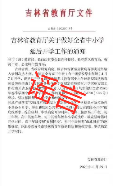 吉林省开学时间延后?辟谣:高三年级4月7日开学不变