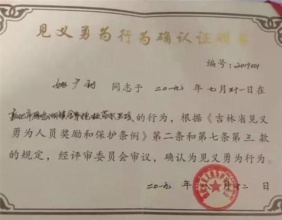7月31日,敦化市官地镇村民姚广利在雁鸣湖镇舍身挽救落水男孩,被湖水无情地夺去了生命。8月12日,经敦化市见义勇为评审委员会审议,姚广利被确认为见义勇为行为。8月22日,当他的妻子姚淑贤接过见义勇为行为确认证明书时,心里百感交集。
