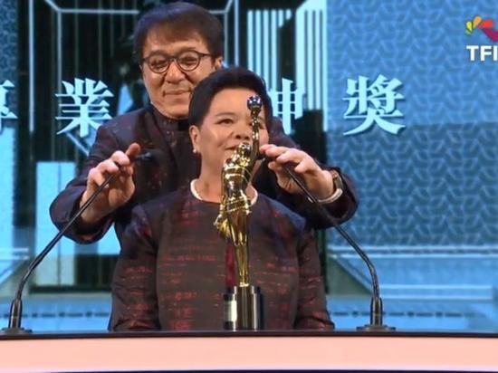 新浪娱乐讯 据台湾媒体报道,第37届金像奖刚落幕,获“专业精神奖”的“茶水阿姐”杨容莲众望所归,成龙为矮小的她调整麦克风高度的那一幕还历历在目。成龙私下告诉工作人员,“我很重视新人的‘质’, 质如果不好,无论演技、外貌、天份有多好,还是不用。”杨容莲对自己来说不只是茶水阿姐,更是偷偷咨询的对象,“问她最淮!