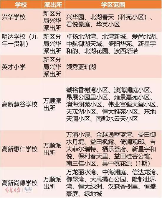 兴华学校、明达学校、英才学校、慧谷学校、慧仁学校、尚德学校。