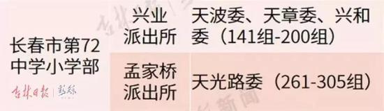 宽城区柳影小学、长春市第七十二中学小学部、长春市柳影学校小学部、长春市基隆学校小学部、长春市星恒学校小学部、宽城区第三实验小学、长春市第七十二中学。