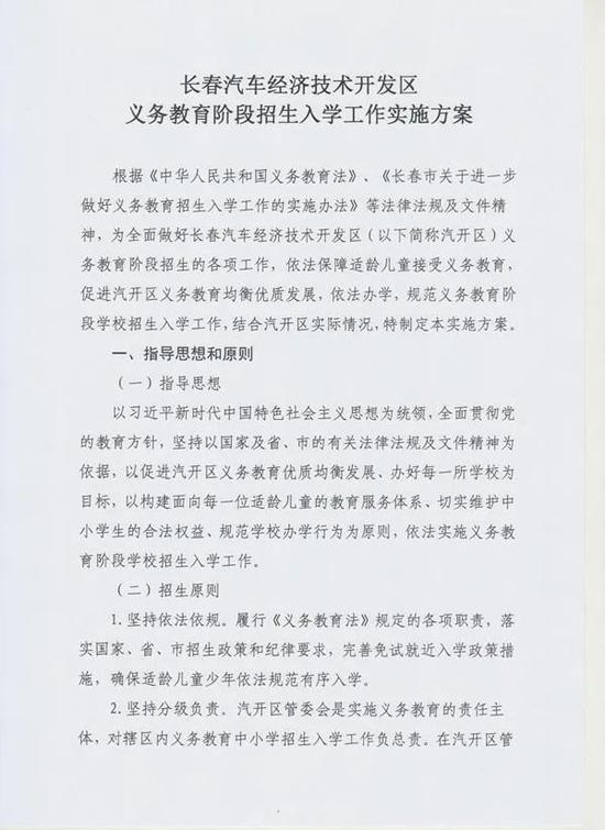 此外,长春市汽开区义务教育阶段招生入学工作实施方案公布。