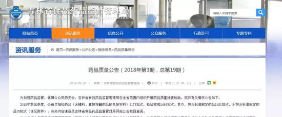 为加强药品监管,保障公众用药安全,吉林省食品药品监督管理局在全省范围内组织开展药品质量抽查检验。现将有关情况公告如下: