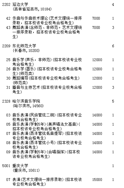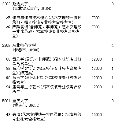七、在本次征集计划中,沈阳音乐学院、延边大学、重庆大学部分专业艺术(文)计划为实际缺额计划数;艺术(理)专业计划为空,不影响考生正常填报及录取。考生应按科类进行填报。