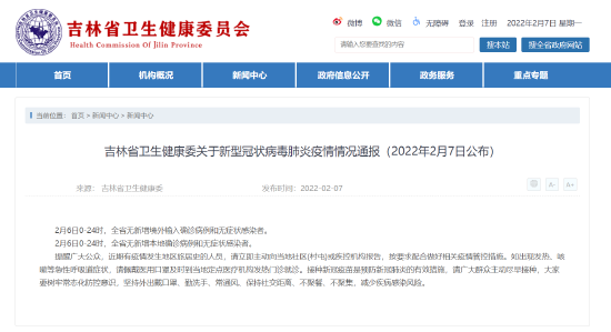 2月6日吉林省无新增本地确诊病例和无症状感染者