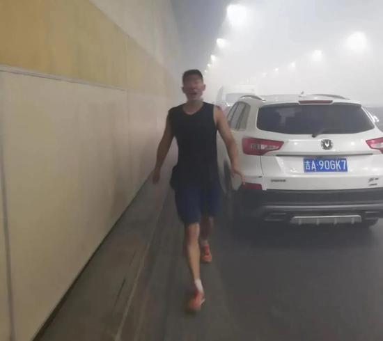随着脚步加快,几人距离起火地点越来越近,此刻,隧道内浓烟让人睁不开眼,三个小伙子边跑,边疏散人群,大声告知留在车里的人,快快弃车,不要呆在隧道内。