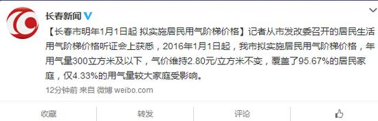 长春市明年1月1日起 拟实施居民用气阶梯价格