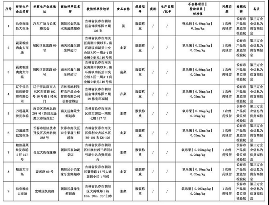 近期,长春市市场监督管理局组织抽检1类食品共494批次样品,其中:合格样品485批次,不合格样品9批次。不合格样品中:食用农产品9批次。