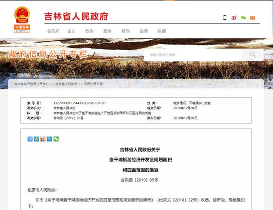查干湖旅游经济开发区规划面积和 四至范围的批 复