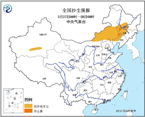 27日6时沙尘暴蓝色预警 内蒙古吉林等地局部有沙尘暴