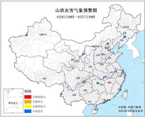 中国天气网讯 水利部和中国气象局8月6日18时联合发布山洪灾害气象预警: