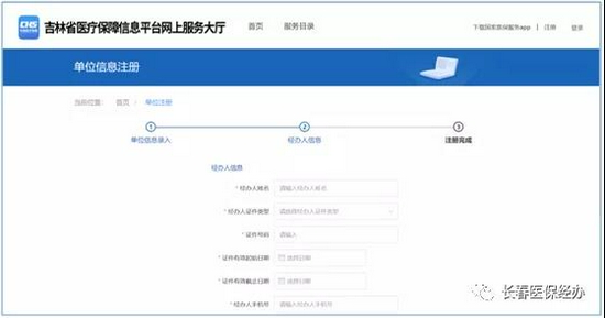 3、点击[下一步],进入经办人信息录入,带*号为必填项,填写完毕点击[下一步]即可注册成功;