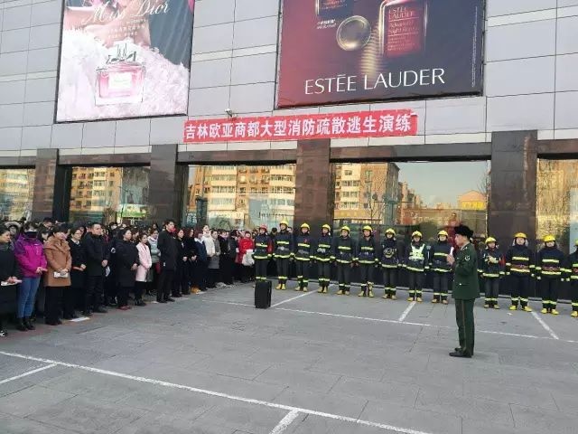 上午七点二十分,疏散演练活动正式开始,假定火场是二层鞋区扶梯口附近因用电量过大导致电源线短路并引燃周围可燃物起火,员工拨打内部报警电话到消防控制室,消防控制室立即通知“欧亚微型消防站队员”赶赴现场进行先期处置,并在商场消防安全保卫部的组织下全体员工利用就近疏散通道在5分钟内全部顺利到达安全位置。此时,辖区消防中队到达现场,成立灭火战斗小组,开展灭火救援,同时利用登高平台消防车营救被困员工。经过微型站和消防队员共同扑救,“火灾”很快被扑灭。