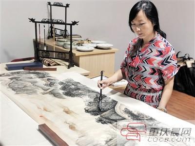 昨日下午,3米长的画卷平整地铺满了杨雪梅面前的长桌,画卷上,巍巍群山中是雄伟的万里长城。杨雪梅拿着毛笔,做最后的润色……今天,她将带着这幅画代表重庆红十字会去北京参加全国的魔豆妈妈创业大赛。