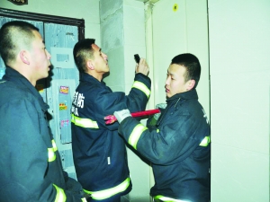 据消防官兵介绍,这种情况下最怕电梯坠落,所以他们利用破拆工具打开电梯门的同时,细心观察电梯的变化。经过10分钟救援,电梯门被打开,被困男子获救。