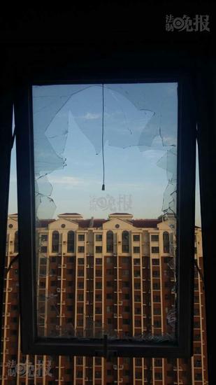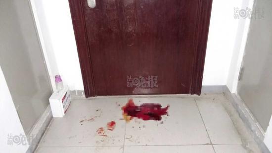 今天上午8时许,法晚记者在御园小区B区11号楼4单元案发单元门前,看到大片血迹及多个血脚印。而在3单元14层看到楼体玻璃破出一个大洞,居民称嫌疑在此砸开玻璃,由此跳楼。