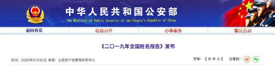 1月20日,公安部户政管理研究中心再度推出全国姓名报告。