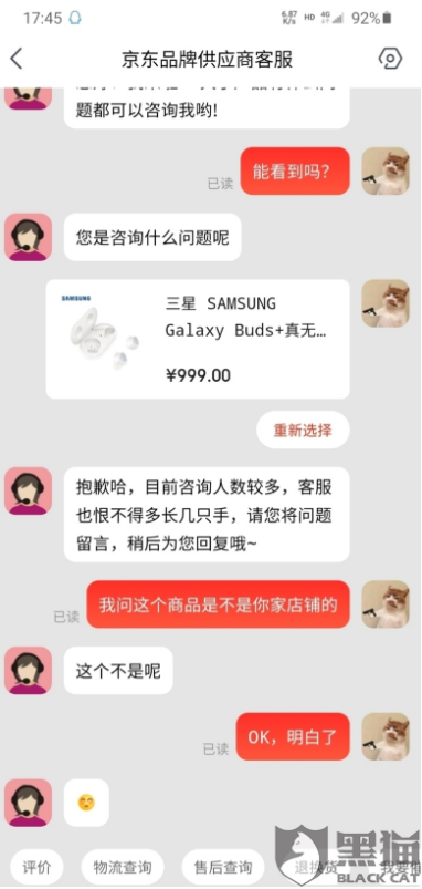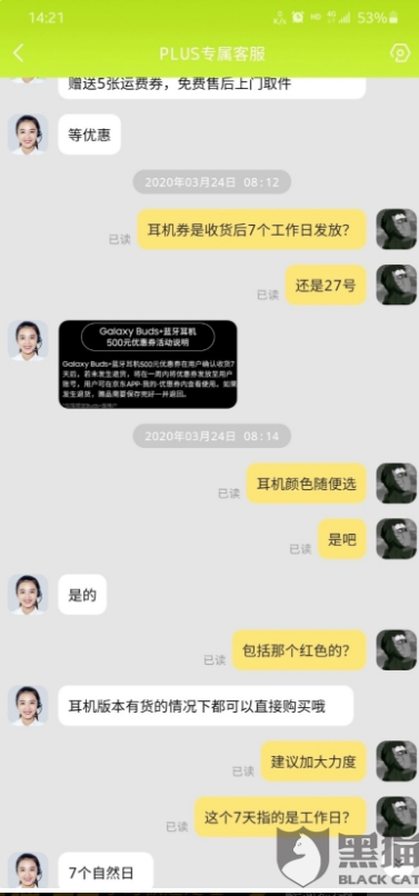 4月14日,@三星GALAXY盖乐世 在黑猫投诉吉林站回复称,已将网友的联系方式及问题反馈,请保持电话畅通,避免漏接,工作人员将与网友联系,为网友解决问题。