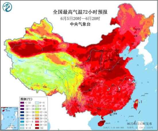 预计6月5日-6月11日,吉林省气温高、降雨少、多大风天气。吉林省平均气温21.5℃左右,比常年18.8℃偏高。