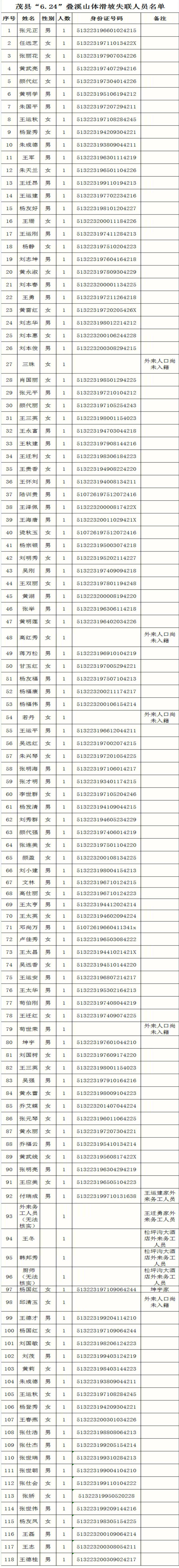 茂县“6.24”叠溪山体滑坡失联人员名单