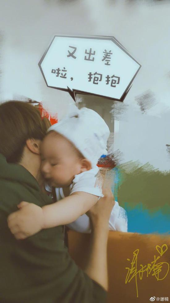 谢楠出差前拥抱小儿子告别 结果被小家伙尿了一身