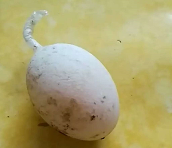 稀奇!汪清农民路边捡到一枚长出“长尾巴”的鸡蛋