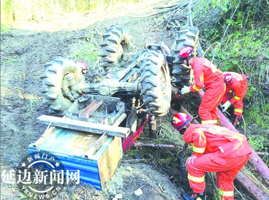 20日下午,在延吉市“梦都美”北侧的山沟里,一名男子在山坡上作业时,车辆失控“四脚朝天”,致使驾驶人员被“扣”在车下。消防官兵驱车到场后,经过救援,才将男子救出。遗憾的是,经过120急救人员诊断,当场宣布驾驶人员死亡。