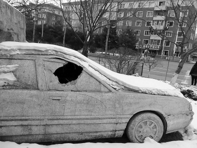 城市晚报讯 4日,长春市民康先生来到创业大街上,发现路边设立的轿车模型,不知被谁给破坏了,车体上出现了一个窟窿,看着让人心疼。