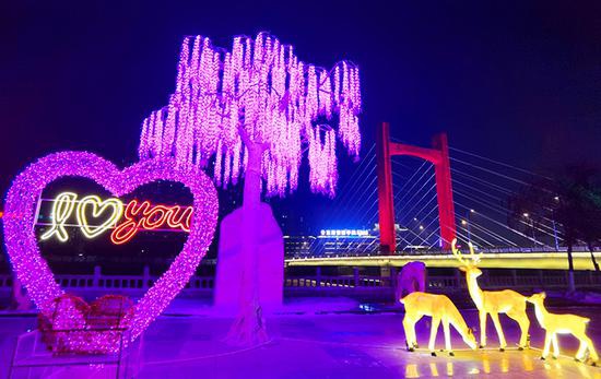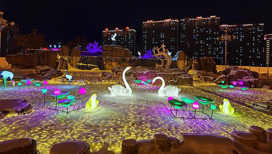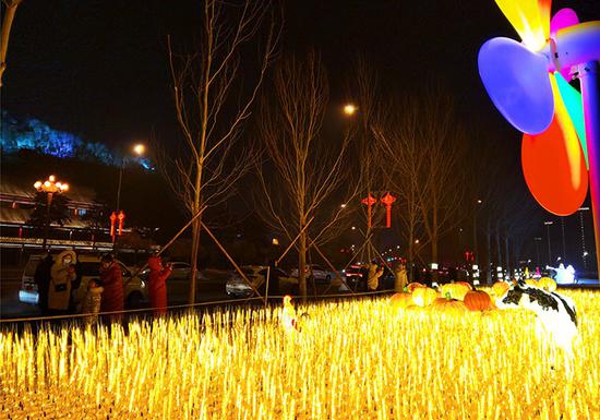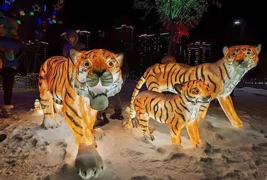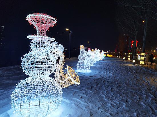 在各路灯杆上,红灯笼样式的LED灯饰分布广泛,人民大街、泰安大路、福民大街、东吉大路等路段安装的中国结彩灯,市民赞不绝口。特别是在东辽河景观带、人民广场、市委门前两侧、半岛广场、市政府广场及政府大门两侧、伊辽高速出口及煤机厂道口等区域,各种造型可爱的动物和卡通形象花灯吸引了百姓目光,一些市民将拍摄的照片和视频上传到朋友圈后,收获了无数点赞和转发,这些观赏区域俨然成了“网红打卡地”。