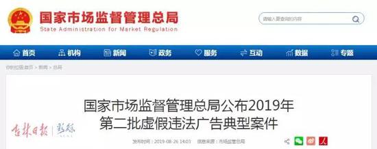 26日,国家市场监督管理总局网站公布了2019年第二批虚假违法广告典型案件。其中包括北京融世纪信息技术有限公司发布违法广告案、北京世纪卓越信息技术有限公司发布虚假违法广告案等。