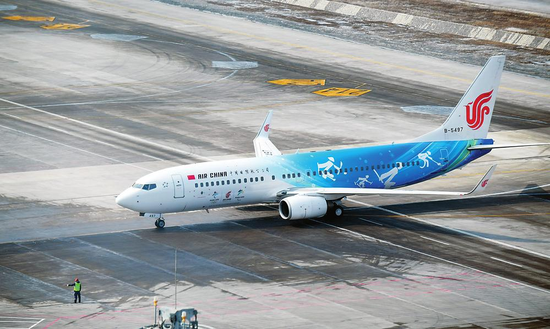 3月4日,冬奥主题彩绘飞机“冬奥运动号”飞抵长春龙嘉国际机场。 新华社记者 林宏 摄3月4日,在长春龙嘉国际机场T2航站楼,吉林省文化和旅游厅、吉林市政府举办欢迎仪式,迎接由北京冬奥组委和中国国际航空公司设计涂装的第二架冬奥主题彩绘飞机“冬奥运动号”首飞长春。同日,“送冬奥祝福带吉祥回家”系列活动启动。