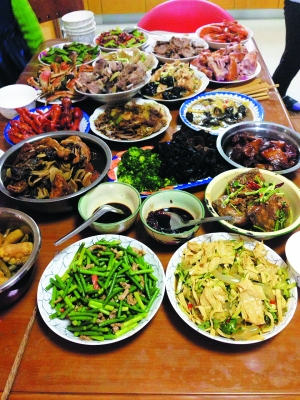 随着气温重新调回“冬季模式”,春节长假也结束了。都说“每逢佳节胖三斤”,全都是因为长假在家吃、吃、吃。排骨、猪蹄子、大虾、饺子……从除夕开始,微信朋友圈里便掀起了年夜饭图片展,因为拍照能力不同、修图能力不同,年夜饭也呈现出同菜不同样的多样性。有的看一眼就能与对象分手、有的看上去就算减肥期也要吃上一口。其实,年夜饭吃啥无所谓,主要看是跟谁吃。14日,市民于女士告诉记者,她家三口人的年夜饭是与其他三家邻居一起吃的。