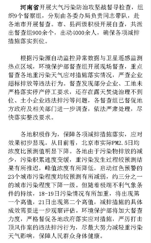 环保部:各地应对重污染天气效果显现