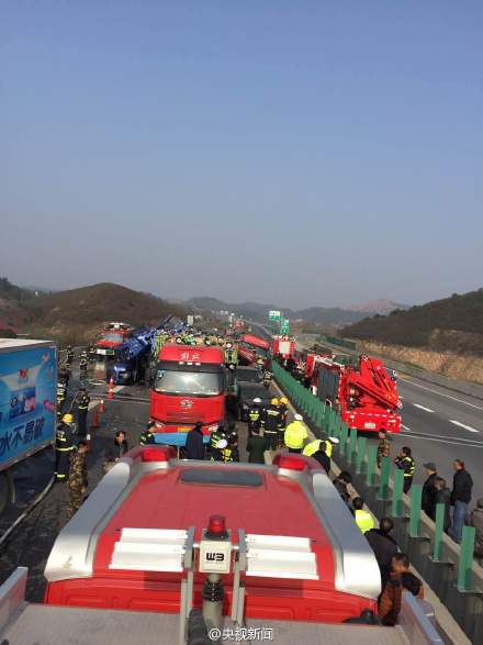 湖北武鄂高速路发生11车连环相撞 8人被困