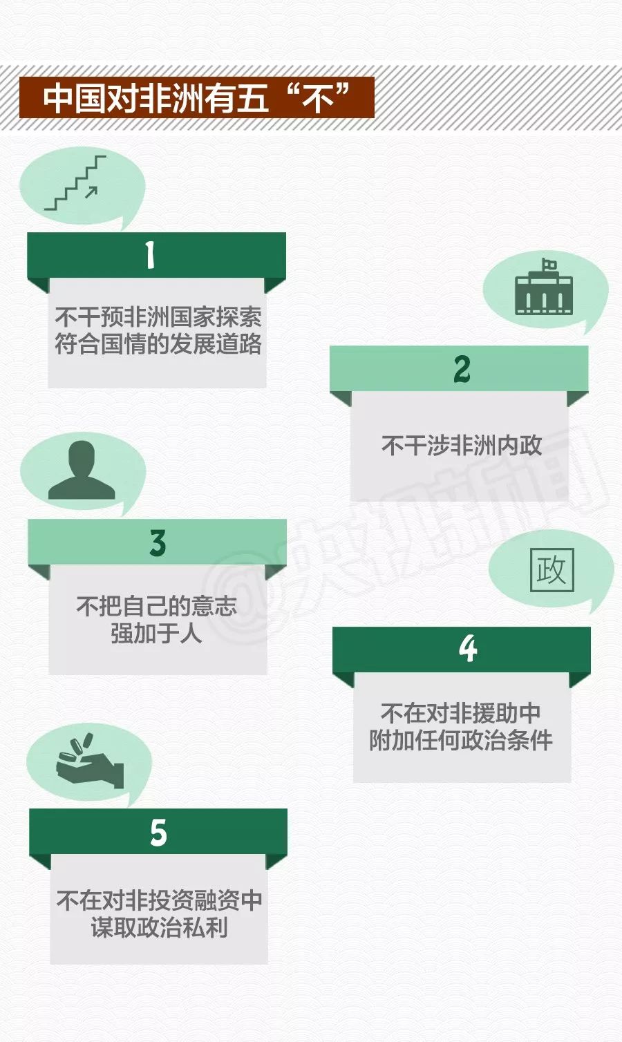 中国希望各国都能在处理非洲事务时做到这“五不”。与会非方领导人表示,中国始终倾听、理解并支持非洲。中国帮助非洲时,从不干涉非洲国家内政。中国在对非合作中总是以义为先,与国际关系中长期存在的不平等局面形成鲜明对比。
