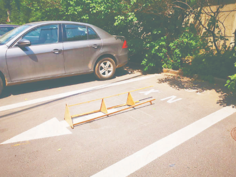 用木架子占车位6月8日上午,长春晚报记者来到鑫鹏花园西区,一进小区就发现停车位上各式各样的“物件”:凳子、树桩、锥形桶、木板,更有甚者在公共车位上放了一条轮胎,还觉得不够保险,又加上了一道地锁……
