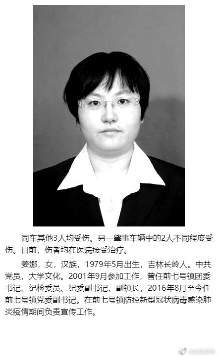 长岭县前七号镇党委副书记姜娜在防控疫情途中殉职