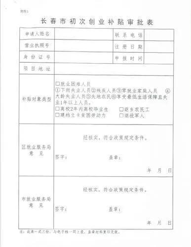 城区、开发区就业服务局受理后,通过吉林就业信息管理系统比对申请人身份信息,并通过实地走访调查方式对申请人相关信息及提交材料进行核查,确保项目的真实性,符合资金发放条件。城区、开发区就业服务局初审合格后填写《长春市初次创业补贴审批表》(附件3)签署意见并加盖公章,按季汇总生成《长春市初次创业补贴申领名册》(附件4)和《长春市初次创业补贴申请汇总表》(附件5),将申报材料复印件报送到长春市就业服务局,纸档和电子档一同上报,所有申报材料一式三份,城区、开发区就业服务局、长春市就业服务局、长春市财政局各一份。每年材料报送长春市就业服务局截止时间12月10日。