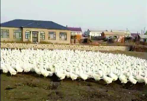 绿野家源家庭农场今年养了3000只大鹅,经过从夏季到冬季的精心饲养,大鹅膘肥体壮。 袁达 摄28公顷水田、20公顷旱田,年产大米15万公斤、杂粮5万公斤、豆油1万公斤,养鸡1000只、大鹅3000只,出产各种禽蛋21万枚,鱼5000多公斤,猪30多头……成立5年多来,绿野家源家庭农场已经“家大业大”。