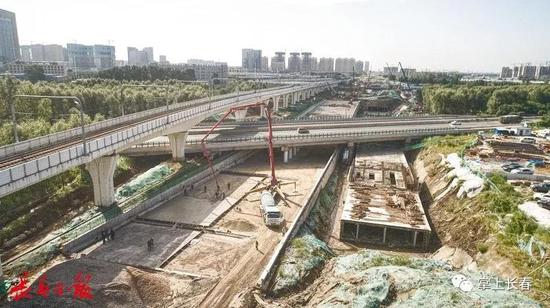 临河街南延长线工程跨越南关区及净月高新区,南北走向,起点在临河街既有路南端,终点在天青路。为确保与轻轨4号线建设有效衔接,2019年临河街南延长线主要实施临河街既有路南端至天工路段工程。该工程由北向南下穿绕城高速拟建132米立交桥,道路全长295m。