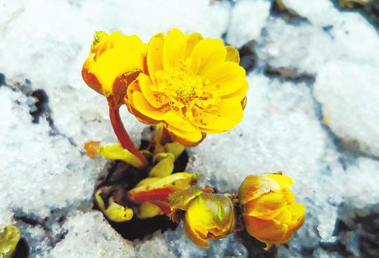 长春市净月潭冰凌花破冰而出