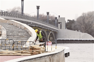 不过如今工程还未全部完工,栈桥旁还未安装防护栏,建筑方提醒行人不要着急体验,工程预计在今年5月中旬完工并投入使用,届时市民就可以前来体验了。 石天蛟 摄