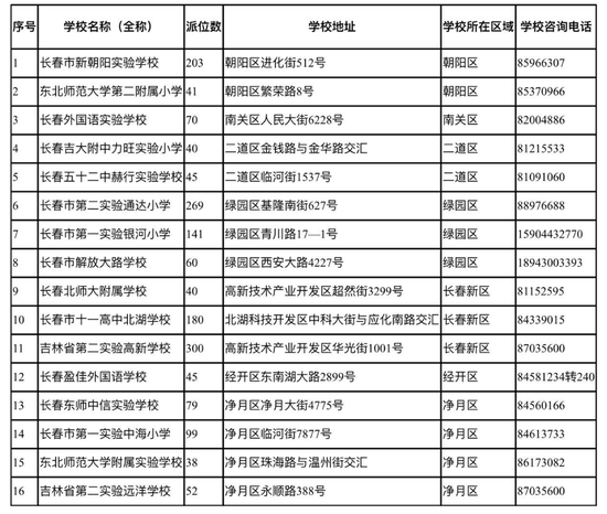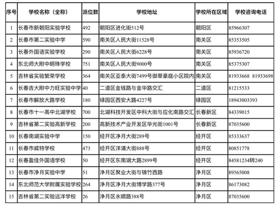 按照《长春市2020年义务教育招生入学工作实施方案》要求,经各城区、开发区教育行政部门审核,各民办学校在依法依规解决历史遗留问题、九年一贯制民办学校小学直升等问题基础上,确定面向全市招生派位数额。现将民办学校招生相关信息公布如下。(附各民办义务教育学校招生信息)