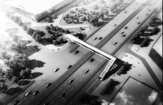 “主桥与梯道均设置雨棚,主桥采用钢结构罩棚形式。罩棚侧面呈筛孔状,在设计理念上也嵌入了汽车元素,更加符合地域特色。同时,梯道采用钢结构与均质钢化玻璃相结合的罩棚形式。”该工作人员进一步介绍。